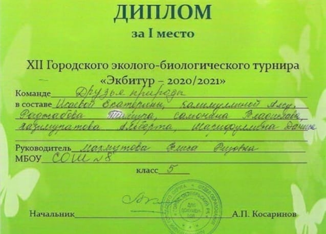 Муниципальное бюджетное общеобразовательное учреждение "Средняя общеобразовательная школа № 8" городского округа город Октябрьский Республики Башкортостан