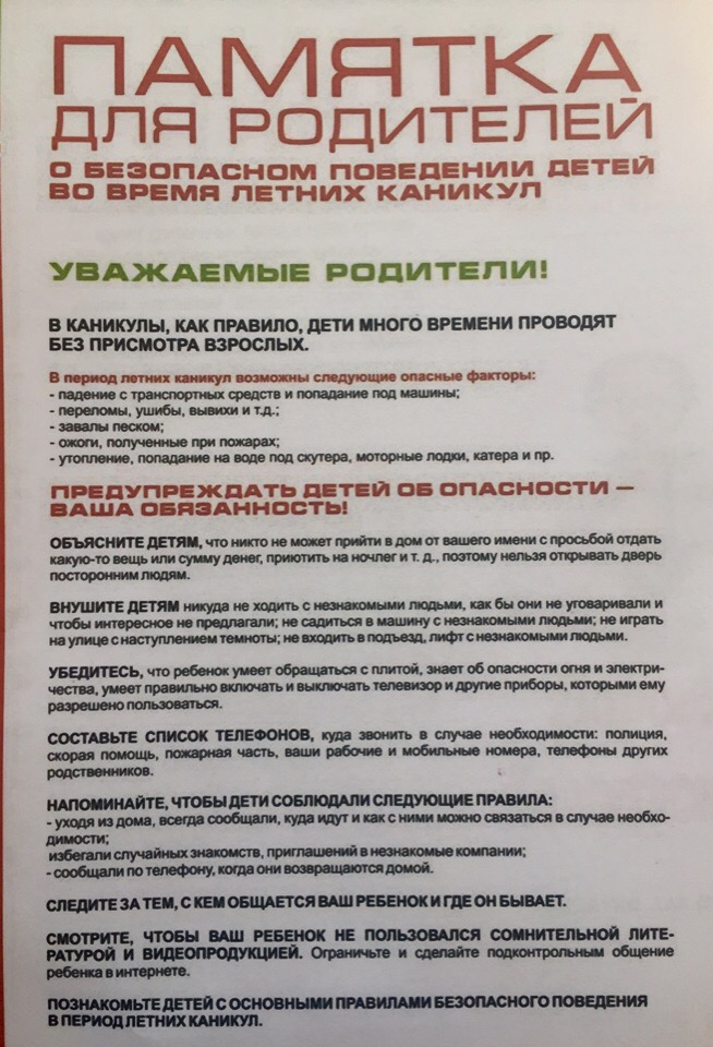 Памятки для родителей