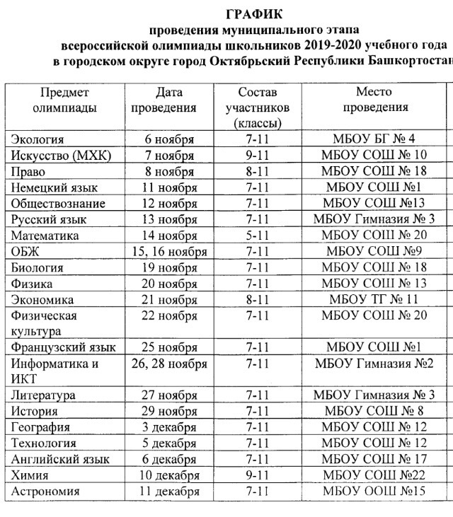 Муниципальный этап всероссийской олимпиады школьников