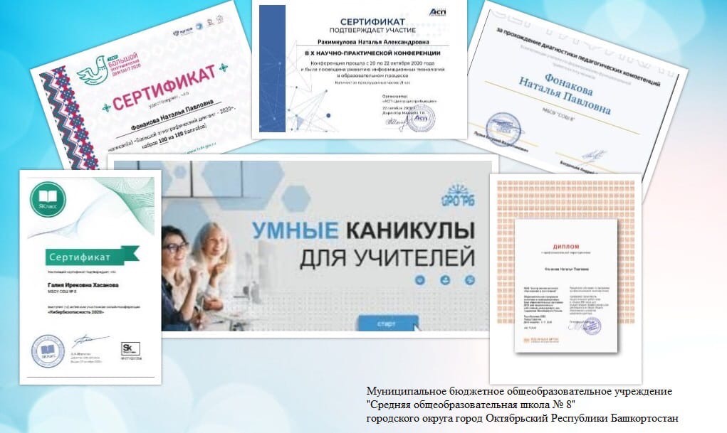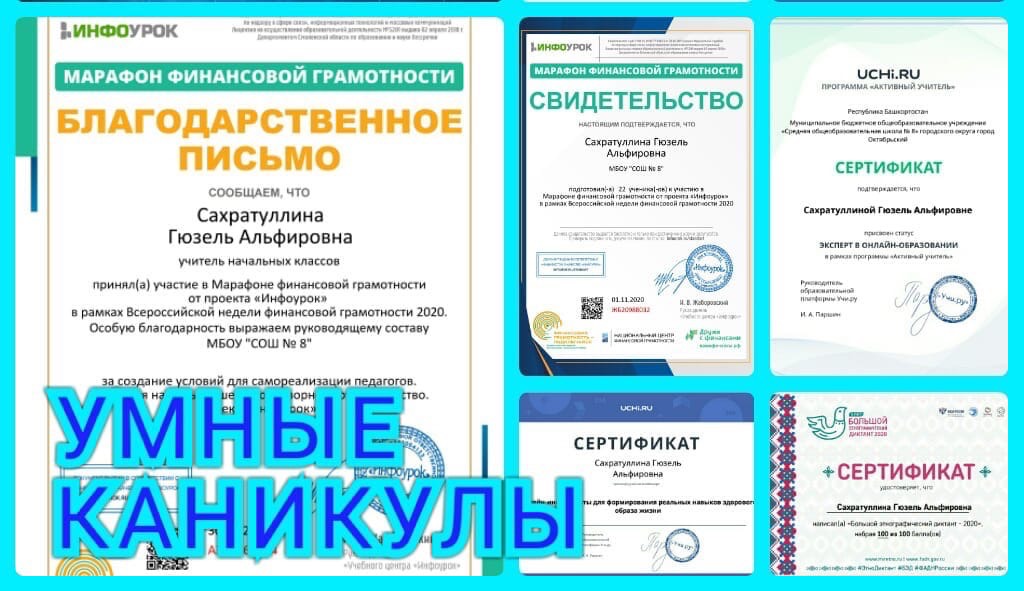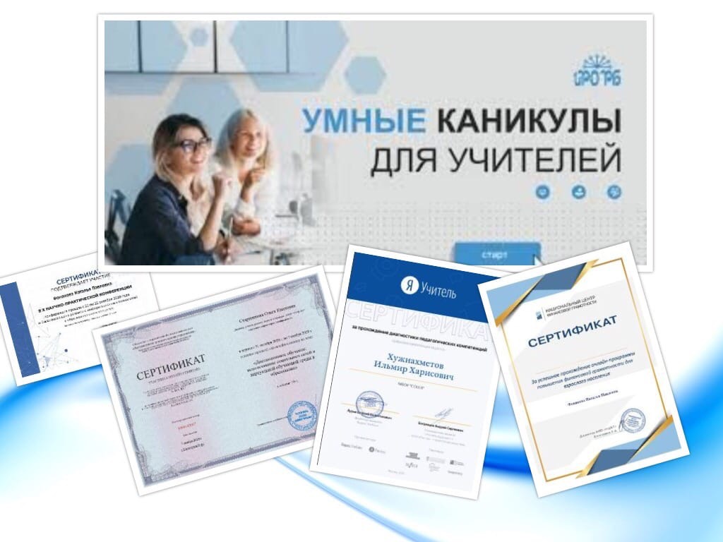 Каникулы - это время, когда есть возможность узнать что-то новое, проанализировать то, что умеешь, и поделиться накопленным опытом. Чем запомнятся осенние каникулы текущего учебного года учителям? Прежде всего многообразием методических мероприятий, предназначенных для творческой работы, самообразования и совершенствования педагогического мастерства. Методические каникулы начались с участия педагогов школы в вебинаре "Я Учитель" 2.0: диагностика и рекомендации по развитию "гибких" навыков педагогов. 6 ноября завершено прохождение педагогами диагностики по направлениям "Цифровые компетенции", Профессиональное выгорание", "Гибкие навыки успешного современного учителя" и "Формирование функциональной грамотности учеников", по итогам которой все учителя получили сертификаты и рекомендации. Значительное количество вебинаров и онлайн-курсов прослушали педагоги с 19 октября по 6 ноября. Особый интерес вызвали мероприятия, посвящённые цифровой трансформации и информационной безопасности, вопросам формирования устойчивой мотивации к здоровому образу жизни, дистанционного обучения, подготовки к ОГЭ и ЕГЭ, специфики олимпиадных заданий, наставничества, методики разработки цифровых образовательных ресурсов, компетенции учителя в системе непрерывного профессионального роста. Учителя русского языка прошли курсы повышения квалификации "Учитель будущего". Не оставили равнодушными педагогов профессиональные конкурсы, онлайн-конференции, семинары-практикумы, круглые столы по вопросам преподавания и использования современных методик и электронных образовательных сервисов. Во время каникул была продолжена работа на образовательных платформах ЯКласс и Учи. ру. Учителям школы присвоен статус эксперта в онлайн-образовании в рамках программы "Активный учитель". Педагоги и руководящий состав школы прошли обучение по программе повышения финансовой грамотности и санитарно-просветительской программе "Основы здорового питания школьников", приняли участие в методическом форуме «Умные каникулы для учителей», марафоне финансовой грамотности и Большом этнографическом диктанте. Подготовлены материалы на республиканский конкурс "Лучший цифровой урок". Осенние каникулы завершены. Для учителей они действительно были умными. Но главное - насыщенными и полезными. Пусть полученные знания дадут хорошие всходы. Удачи всем в новой учебной четверти!
