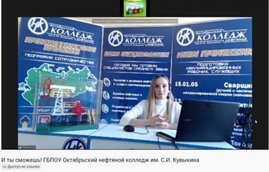 Знакомство началось с Октябрьского нефтяного колледжа им. С.И. Кувыкина. На онлайн-встрече “ПрофиДиалог” ребята познакомились с выпускником колледжа Фаритовым Р. Ф., достигшим успеха в профессиональной деятельности.