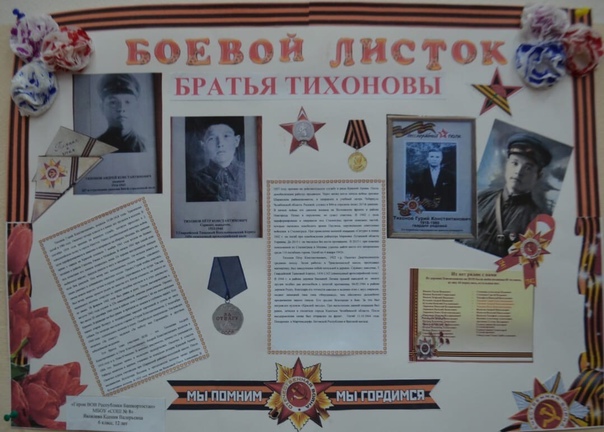 В городском конкурсе, направленном на формирование активной жизненной и общественной позиции учащихся, патриотическое и эстетическое воспитание, привлечение внимания подрастающего поколения к знаменательным историческим событиям страны и раскрытие творческого потенциала школьников, приняли участие победители школьного этапа конкурса боевых листов.