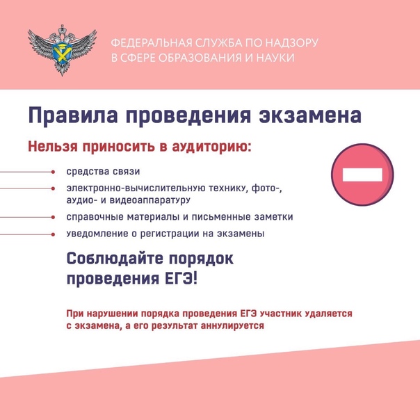 Уважаемые выпускники! Напоминаем основные правила проведения экзамена, убедительно просим соблюдать установленные требования и не допускать нарушений во время экзамена. У вас всё обязательно получится: сможете с достоинством пройти государственную итоговую аттестацию и получить высокие баллы!